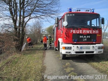 Am 22.03.2017 wurde gegen 13:30 Uhr ein Flächenbrand an der Bahnlinie Berlin-Hannover in der Nähe vom Isenbütteler Gewerbegebiet gemeldet. Wir wurden per Sirene alarmiert und haben diesen kleinen Flächenbrand schnell in den Griff bekommen. Kurz darauf wurden dann noch 2 weitere Flächenbrände an der Bahnlinie in Richtung Gifhorn gemeldet. Diese waren auch schon etwas ausgedehnter. Daraufhin entschloss sich der Einsatzleiter Björn Kölsch die Feuerwehr Gifhorn zur Unterstützung anzufordern. Diese kam dann mit 2 weiteren Tanklöschfahrzeugen zur Unterstützung. Die Bahnstrecke Braunschweig-Gifhorn musste kurzzeitig gesperrt werden. Nach gut 1,5 Stunden war der Einsatz dann beendet.