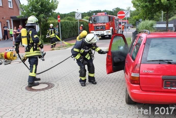 Heute wurden wir um 15:06 Uhr zu einem Verkehrsunfall mit 2 beteiligten PKW und 2 eingeklemmten Personen alarmiert. Vor Ort stellten wir fest, dass aus einem der PKW Rauch drang. Sofort begannen wir mit der Menschenrettung und der Brandbekämpfung; unterstützt wurden wir vom DRK Gifhorn.