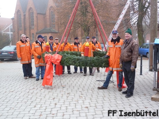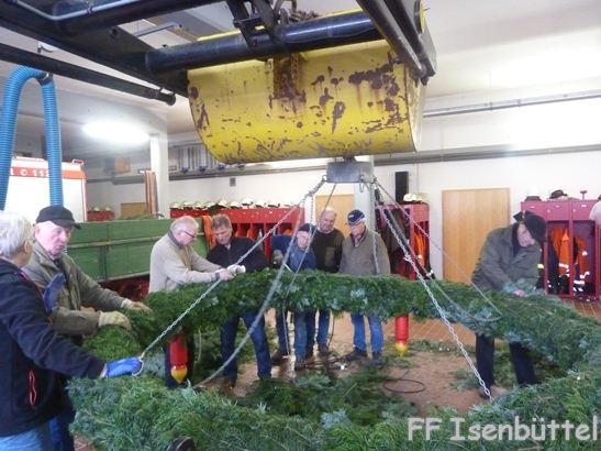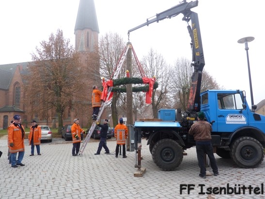 Am Samstag den 25.11.2016 wurde der Kranz auf dem Gutsplatz instaliert. Mit Hilfe eines Krans der Firma Daenicke aus Isenbüttel wurde erst der Grundständer aufgestellt und dann der Kranz hoch gehieft.