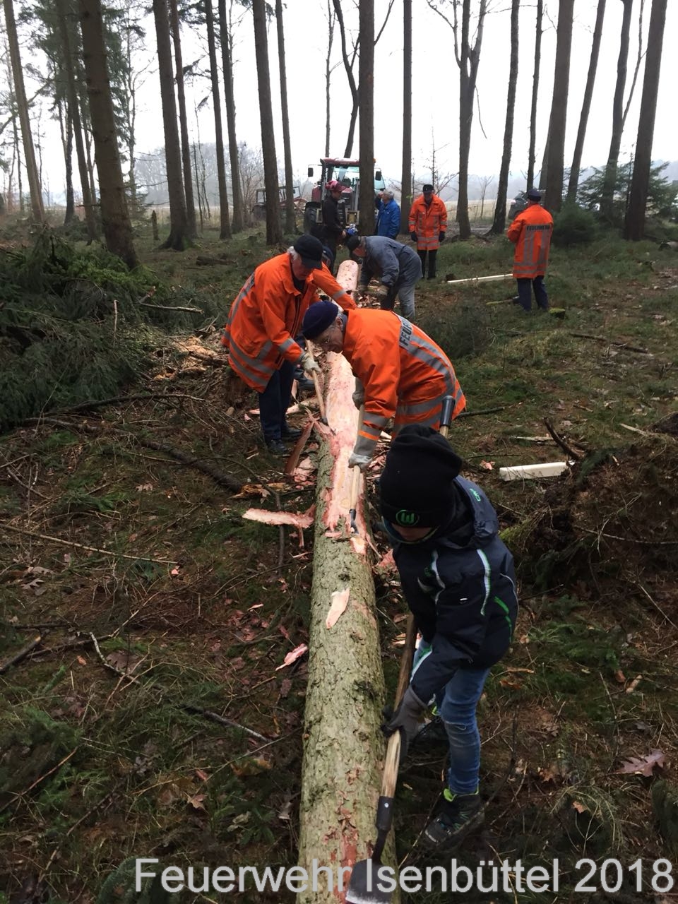 Am vergangenen Samstag machten sich 11 Kameraden unserer Altersabteilung mit Bürgermeisterin Tanja Caesar auf den Weg nach Sprakensehl, um den neuen Maibaum zu schlagen. Unterstützt wurden sie hierbei von den Kameraden der Altersabteilung aus Sprakensehl und dem ansässigen Förster. Vor Ort wurde der Baum frisch geschlagen und anschließend in schweißtreibender Handarbeit von der Rinde befreit. In den nächsten Wochen wird der Baum zum Feuerwehrhaus Isenbüttel transportiert, wo er noch weiter trocknen muss bevor er dann 2019 das erste Mal aufgestellt wird. Nach getaner Arbeit verweilten die Kameraden noch auf eine Bratwurst und das eine oder andere Kaltgetränk im Feuerwehrhaus Sprakensehl.