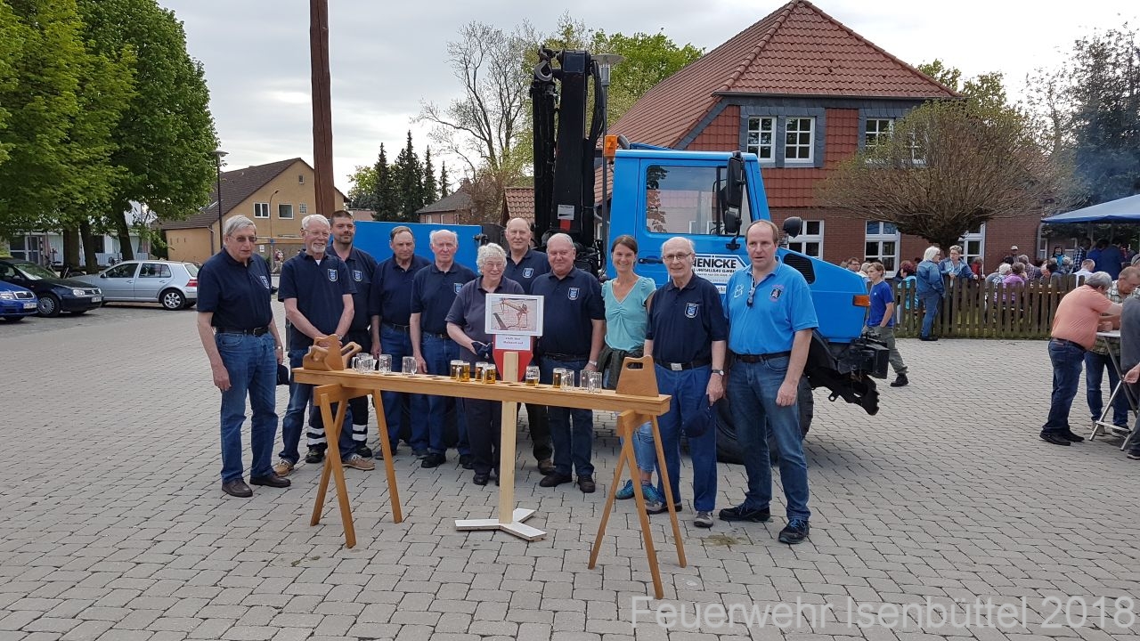 Dieses Jahr wurde der Maibaum durch die Altersabteilung der Feuerwehr Isenbüttel schon einen Tag früher, nämlich am 29.04.2018, aufgestellt. Mit der Unterstützung des Krans der Firma Daenicke wurde der Baum aufgestellt. Der Posaunenchor Isenbüttel hat wie immer für die schöne, musikalische Untermalung gesorgt. Für die zahlreichen Gäste wurden kühle Getränke und Spezialitäten vom Grill angeboten.