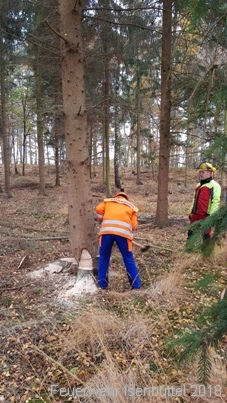 An unserer letzten Maschinistenausbildung in diesem Jahr stand Motorsägenausbildung auf dem Plan. Bei bestem Wetter hatten 7 Teilnehmer die Möglichkeit in einem Waldstück an der K 117 Richtung Tankumsee ihre Kenntnisse und Fähigkeiten beim Fällen, der verschiedenen Schnitttechniken und der Aufarbeitung von Bäumen zu vertiefen.  Jeder Teilnehmer hatte die Möglichkeit mindestens einen Baum zu fällen. Da sich ein zu fällender Baum in einer nebenstehenden Eiche aufgehängt hatte, wurde dieser sicher, mittels Greifzug und Umlenkrolle, zu Fall gebracht. Eine ca. 60 cm starke und 25 hohe Fichte (Rückhänger) wurde ebenfalls sicher mit Greifzug Unterstützung gefällt. Zum Mittag stärkten wir uns mit Bratwurst und Krakauer vom Grill. Da die Ausbildung bei den Kameraden gut angenommen wurde, werden wir diese im nächsten Jahr wiederholen.