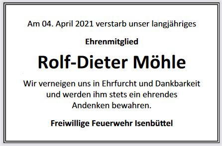 Am 04.04.2021, ist unser Ehrenmitglied Oberfeuerwehrmann Rolf Dieter Möhle im Alter von 72 Jahren verstorben.